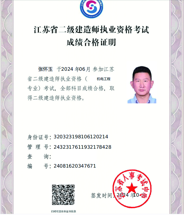 江苏帝邦安装分公司经理高永才科学管理,精益求精,严把质量,措施得当提前20天完成施工任务,并一次验收合格,得到了建设方和总包单位的一致表扬!